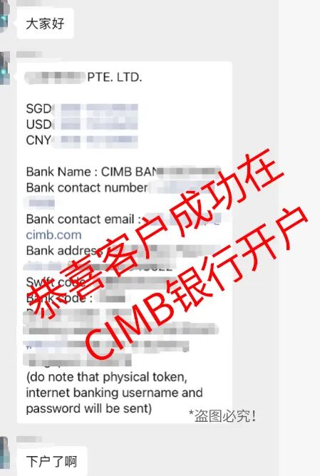 Photo/Client successfullyopened bank accountswithOCBC,CIMB,Airwallex,ANEXT BANK, etc…!