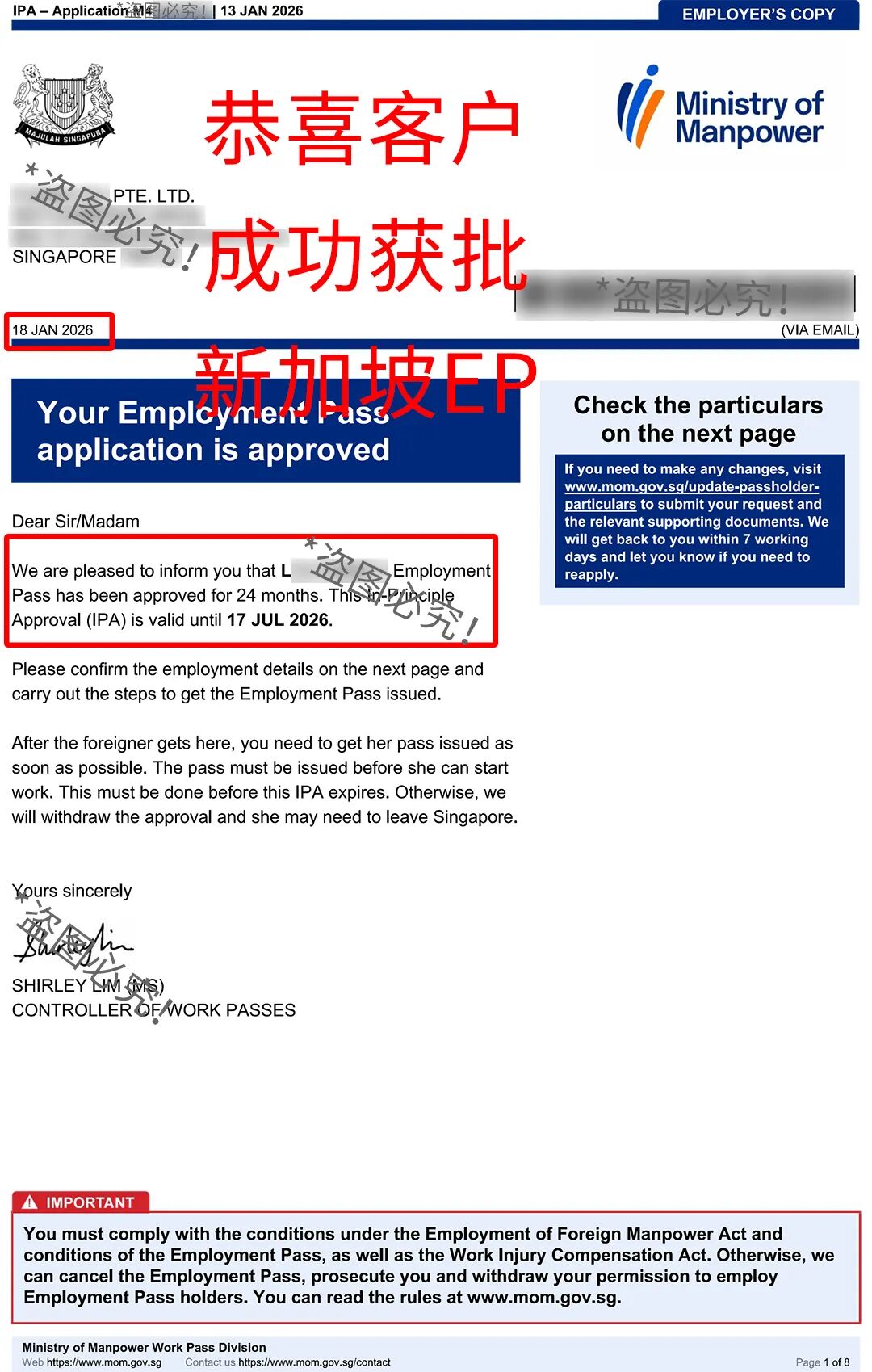 Photo/Client successfully approved for EP in Singapore, photo theft must be investigated!