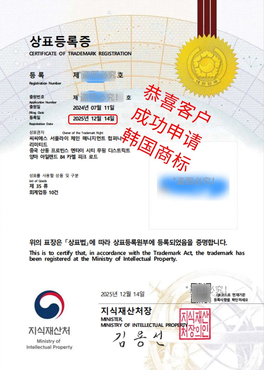 Picture/Customer applied for a Korean trademark!