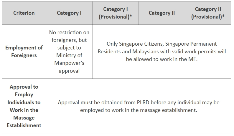 (As far as possible) Singapore Citizens, PR, holders of Singapore Permanent Work Permit (PWP), Malaysian nationals holding Singapore PWP, massage therapists are only allowed to work in a single premisesunless they are granteda special permit bythe SPF.