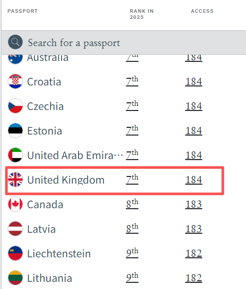 Strong passports with visa-free access:British passports allow visa-free or visa-on-arrival access to most countries and regions around the world, providing great convenience for international business and travel.