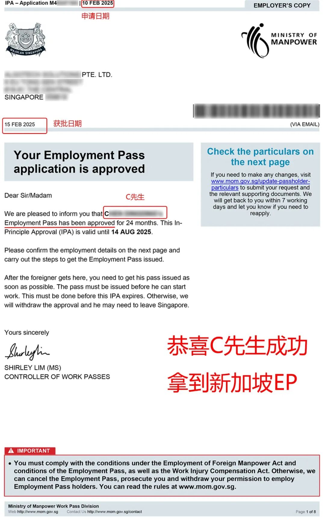 In the face of Singapore’s stringent EP approval standards, we provided Mr. C with all-round support with our professional experience and efficient execution.