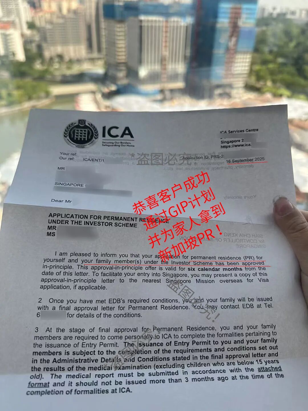 InSeptember2025, the client formally obtained theGIPPrinciple Approval Letter, and aftercompleting the investment capitalization and submitting the proof within6months, the whole family successfully obtained thePRstatus.