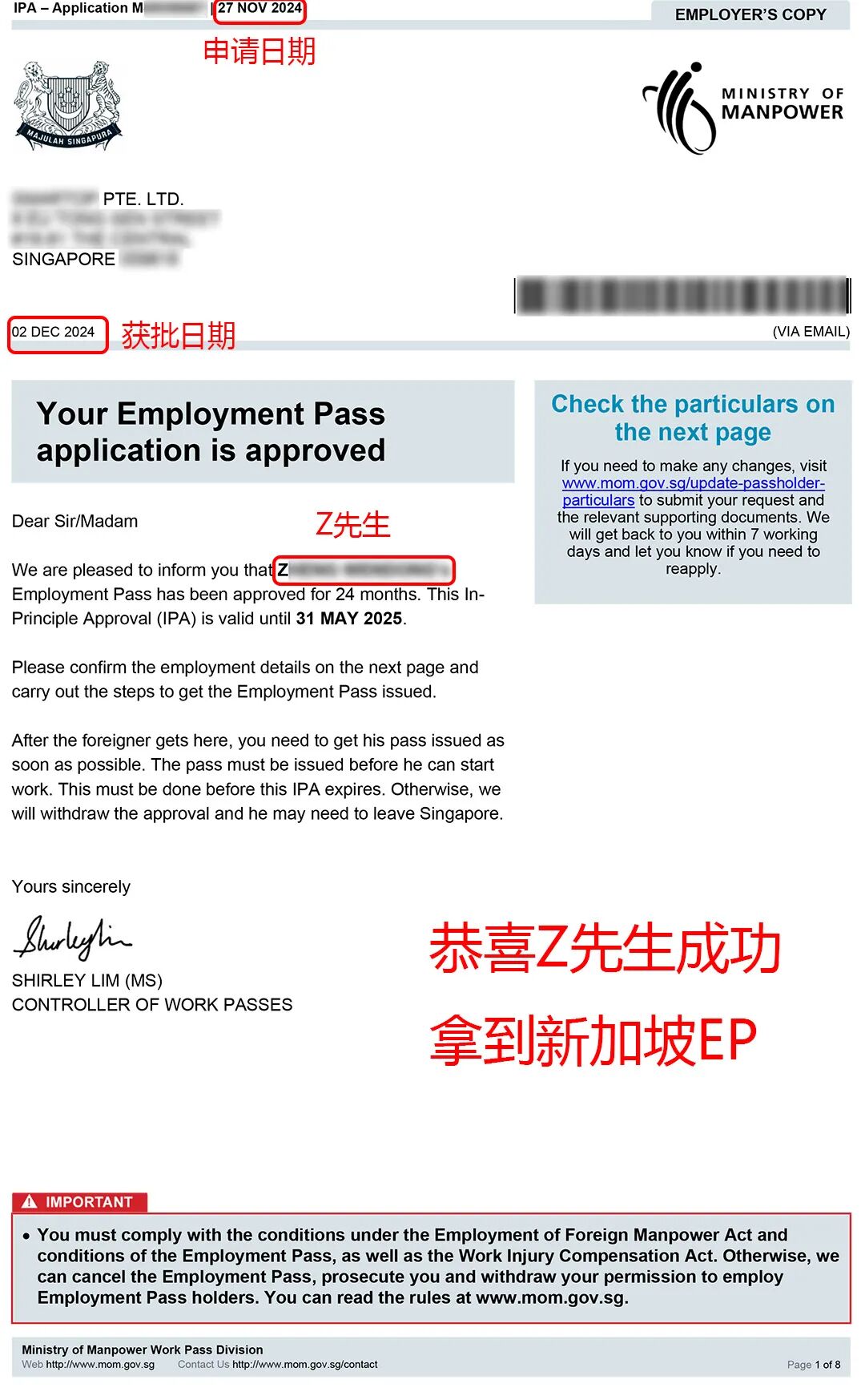 Mr. Z and his family are gradually integrating into Singapore society and are looking forward to their future life and work in Singapore.