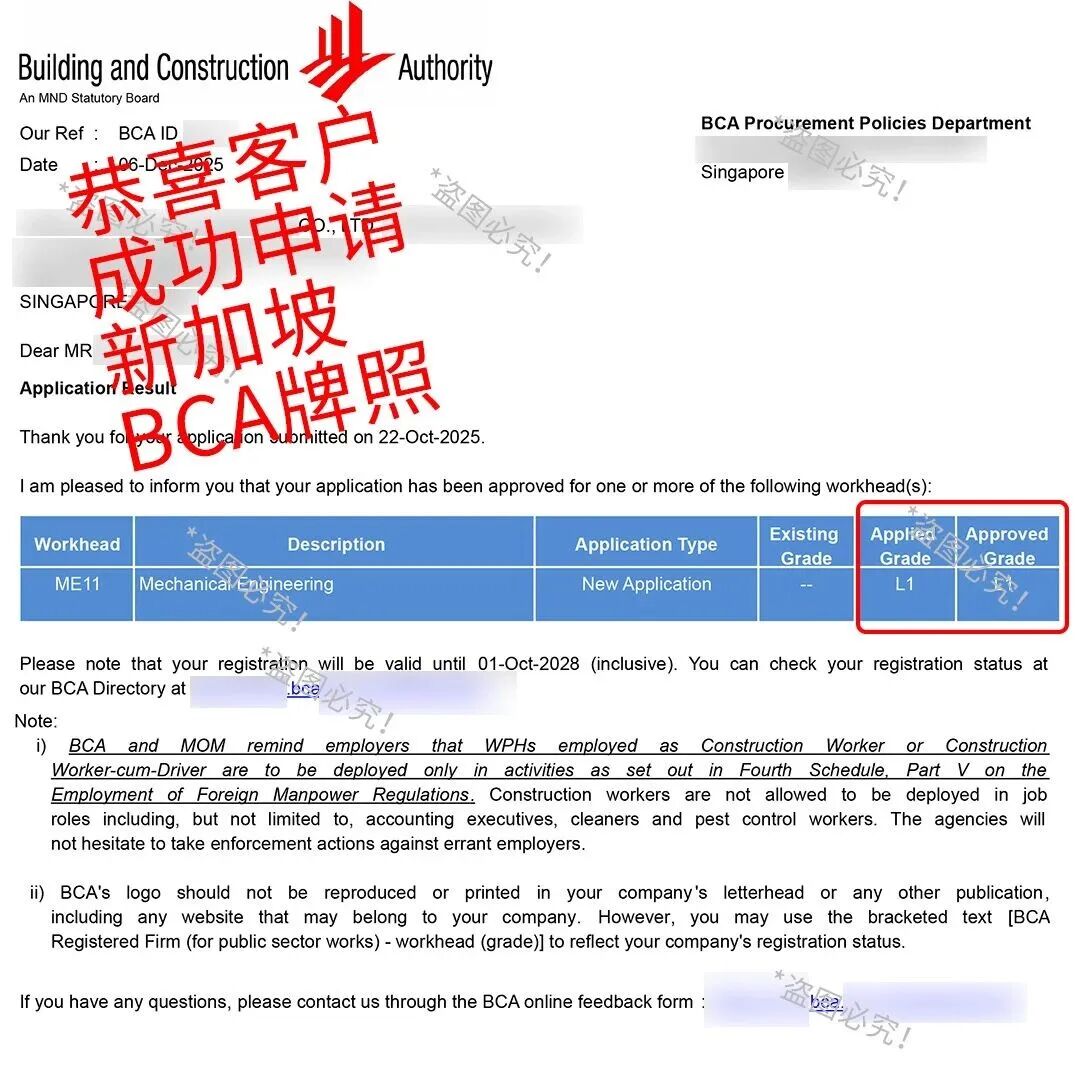 2025年12月8日,A公司高管收到了期待已久的邮件通知。当他点开邮件,看到新加坡建设局(BCA)发来的L1牌照获批函时,激动之情难以言表。
