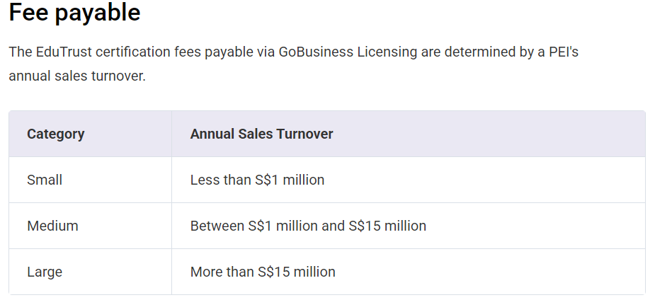 包括不可退还的申请费(130.80新元)和评估费。评估费因申请类型和机构规模而异(例如,中型机构新申请评估费为1,853.00新元)。